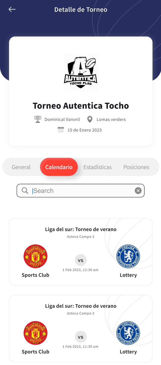 Nosotros te ayudamos a que tengas la mejor de las experiencias jugando el deporte que más te gusta. Podrás visualizar de manera sencilla en tu aplicación las siguientes secciones y te mantendremos actualizado de cualquier cambio en los partidos que te importan.